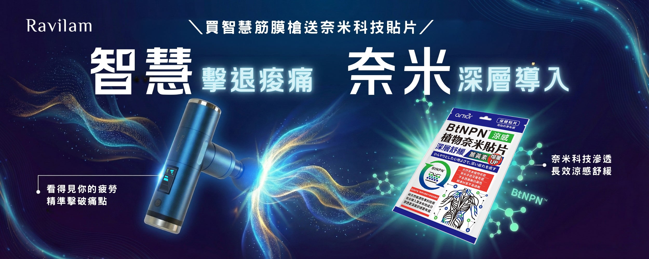 🔥 本月主打:買 Ravilam 智慧筋膜槍,限時加贈「BtNPN 植物奈米貼片」!點此購買